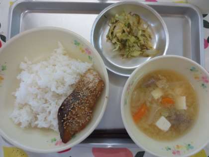 きょうの給食9月14日(木) 公開日 2017/09/15 更新日 2017/09/15 給食の献立 ごはん さかなのやくみやき とんじる キャベツの梅昆布 牛乳 9月といってもまだまだ昼間の気温は高いので教室の中は熱気で暑いくらいです。 子供たちは元気いっぱい。野菜もたっぷり食べてくれます。 とんじるも残りがないほどどこのクラスもカラカラです。 魚の薬味焼きも皮ごと残さず食べてくれました。 いいね(0)