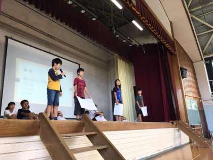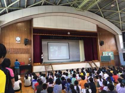 自分たちで作った映像を見てもらったり、クイズを出したり、劇を見てもらったりします。