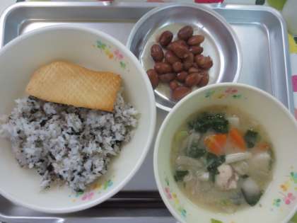 きょうの給食11月8日(水) 公開日 2017/11/08 更新日 2017/11/08 給食の献立 いい歯の日 かみかみごはん いかのまつかさやき こんさいのごまじる 金時豆の甘煮 牛乳 11月になり農家の方から直接サトイモが届くようになりました。 ほかに大根も届きます。 ほりたての根菜はとてもおいしく栄養がいっぱい詰まっています。 いいね(0)