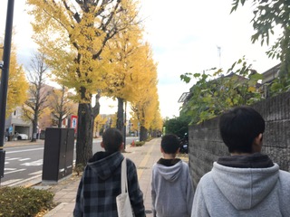 5・6年生は少し遠い高尾警察署まで、イチョウ並木道を歩いて行きました。
