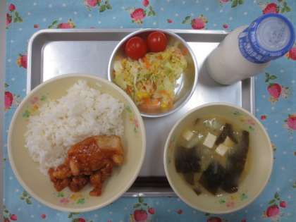 2月27日(火) 今日の給食 公開日 2018/02/27 更新日 2018/02/27 給食の献立 献立名 ・ごはん ・鶏のトンテキ風ソース ・コールスローミニトマトつき ・わかめと玉ねぎの味噌汁 ・牛乳 いいね(0)
