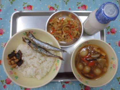 3月7日(水) 今日の給食 公開日 2018/03/07 更新日 2018/03/07 給食の献立 献立名 ・ごはん ・ししゃもの磯辺焼き ・芋団子汁 ・野菜のだし醤油和え ・ぶどう豆 ・牛乳 いいね(0)