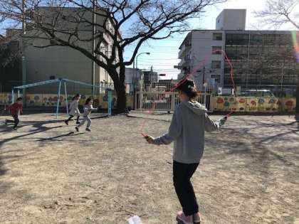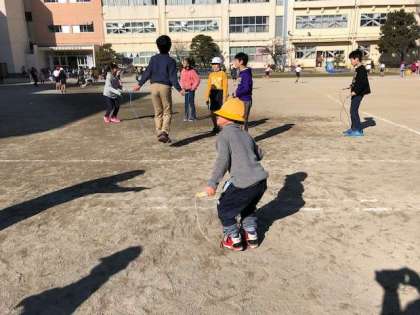縄跳びカードをもとに目標を決めてひたむきに練習する姿があります。