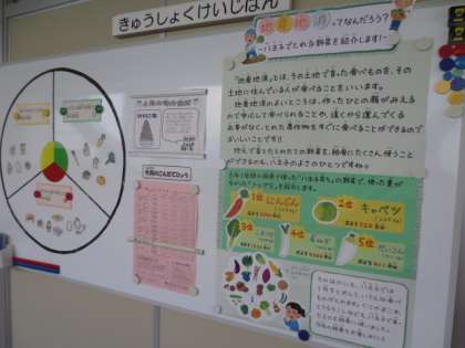 今日から、給食掲示板に「地産地消ってなんだろう?」のポスターを掲示しました。