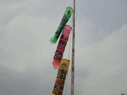 学校の校庭に みどり学級のみんなが作ってくれた 「こいのぼり」が気持ちよさそうに泳いでいます。