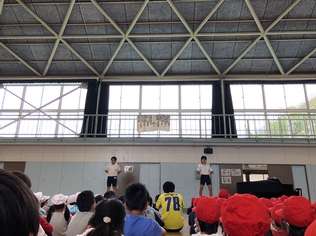 今年度の運動会スローガンと、応援団団長の紹介がありました。