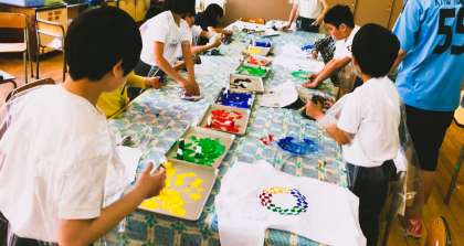 高学年は市松模様に使われている三種類の四角形を使ってオリジナルのシンボルを作りました。
