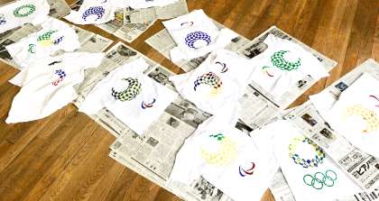 前後でオリンピックとパラリンピックのシンボルをステンシル。
