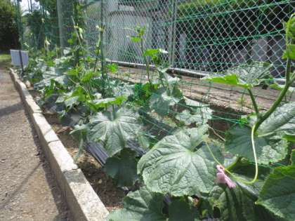 五小の給食農園のきゅうりが順調に育っています。前回観察したのが1週間ほど前ですが、茎が伸びて、葉も大きくなりました!これからの成長も楽しみです。