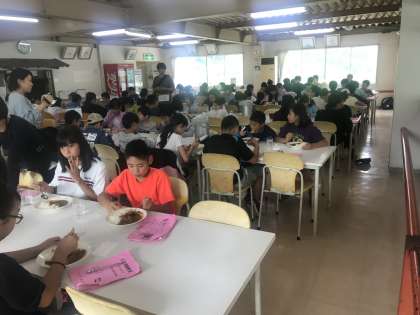 草木ドライブインで昼食。おいしいカレーをモリモリ食べています!