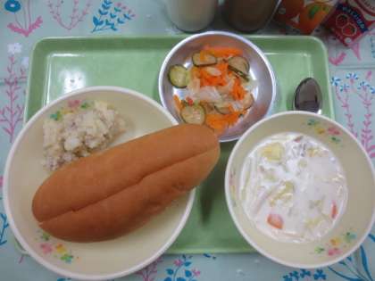 今日の献立は「マッシュサンド」「キャベツのクリームスープ」「八王子産はちみつ入りサラダ」「セレクトドリンク」です。