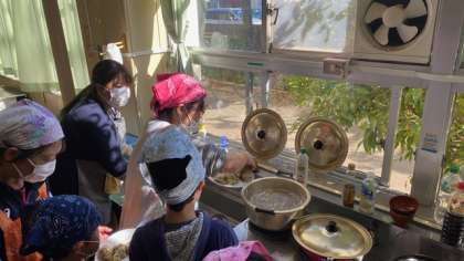 中々調理に参加できないでいる子供に声をかけてくださった保護者の方々。