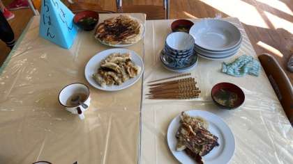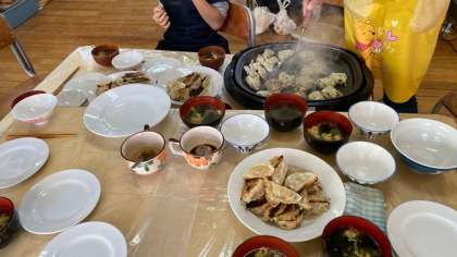 余った調味料と餃子の餡を元に、餡掛けハンバーグを作ってくださった保護者の方々。