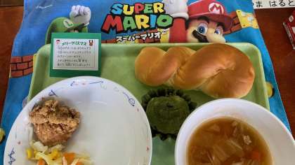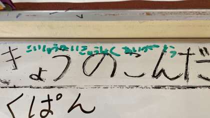 みどり学級の1年生が給食献立を書くホワイトボードに「最終回給食ありがとう」のメッセージを書いていました。