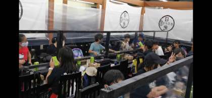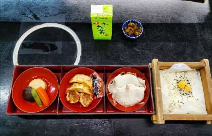 お昼ごはんは、揚げ餃子膳をいただきました。 蒸した栗おこわも、熱々で美味しくいただきました!