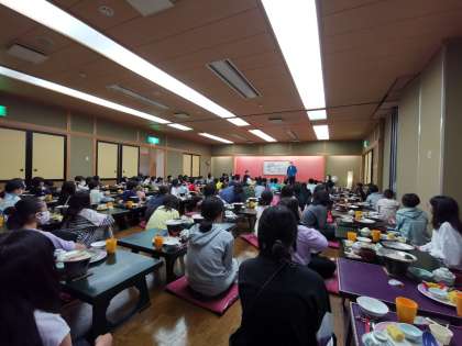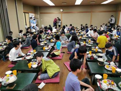 食べ終わったあとは、校長先生から運動会についての重大発表がありました。真剣に聞き入る子供たちです。