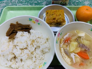 1月22日金曜日 公開日 2021/01/22 更新日 2021/01/22 給食の献立 きょうのこんだて 麦ご飯、たまご焼き、豚汁、花ごぼう、果物ポンカン、牛乳です。 きようは、五つの輪で体力アップということで、疲労回復の献立です。 運動後にタンパク質や糖質を素早く摂ることで壊れた筋肉を修復してくれます。 iPhoneから送信 いいね(0)