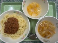 にんじん昆布ご飯、さわらの照り焼き、ピリ辛キャベツ、ほうれん草と豆腐の味噌汁、牛乳です。