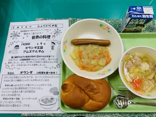 2月9日火曜日 公開日 2021/02/09 更新日 2021/02/09 給食の献立 きょうのこんだて ミルクパン、ウインナーソテー、スタンポット、グロテンスープ、牛乳です。 世界の友達プロジェクトから、本日はオランダの料理を食べました。 iPhoneから送信 いいね(0)