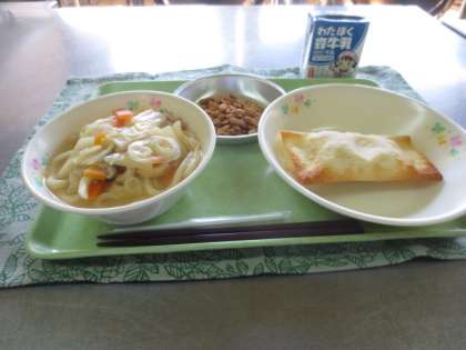 3月10日水曜日 公開日 2021/03/11 更新日 2021/03/11 給食の献立 きょうのこんだて 味噌煮込みうどん、ツナポテトぎょうざ、黒糖ナッツ、牛乳です。 大きな餃子の皮でふかして潰したじゃがいもとツナ・玉ねぎ・コーン をバターで炒め包んで焼いた餃子は、大人気です。 きょうも完食でした。 いいね(0)