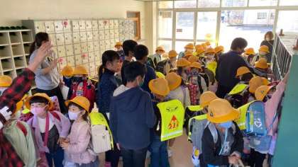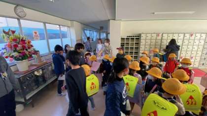 「1組はこっちに並ぶよ。一緒に行くよ。」昇降口で頼もしい声が聞こえてきます。