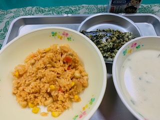 4月19日(月) 公開日 2021/04/21 更新日 2021/04/21 給食の献立 きょうのこんだて 大豆ピラフ、鯵のパン粉焼き、じゃがいものポタージュ、牛乳です。 大豆は苦手な子が多いのですが、ケチャップベースのピラフにするとペロリと食べています。 iPhoneから送信 いいね(0)