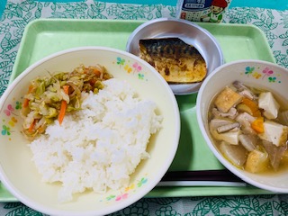 4月30日(金) 公開日 2021/04/30 更新日 2021/04/30 給食の献立 きょうのこんだて ご飯、サバのカレー焼き、のっぺい汁、野菜の土佐和え、牛乳です。 サバの切り身をしょうが、酒、みりん、さとう、醤油、カレー粉の中に漬け込みオーブンで焼きました。白米に合う一品です。 iPhoneから送信 いいね(0)