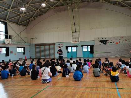 残念ながら雨が降って校庭が使えませんが、体育館にて明日の運動会のリハーサルをしています。