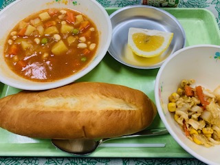 5月25日(火) 公開日 2021/05/25 更新日 2021/05/25 給食の献立 きょうのこんだて ソフトフランスパン、チキンビーンズ、温野菜のドレッシングサラダ、果物日向夏、牛乳です。 いつも豚肉で作るポークビーンズを鶏肉で作りました。優しい味です。 果物は日向夏、爽やかな香りのさっぱりとした甘味の柑橘類です。 iPhoneから送信 いいね(0)