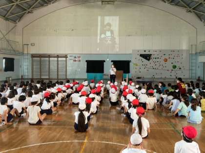 子供たちは、ロンドンパラリンピック元日本代表の秋元妙美選手のビデオレターから、身体に不自由を抱えている方の生活について知るとともに、ボッチャ体験を通じで競技の楽しさも味わっていました。