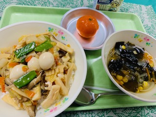6月7日(月) 公開日 2021/06/10 更新日 2021/06/10 給食の献立 きょうのこんだて 中華丼、玉ねぎとわかめのスープ、果物冷凍みかん、牛乳です。 蒸し暑い日が続くようになりました。 体調をくずしがちですので、しっかり食べて体力をつけましょう。 iPhoneから送信 いいね(0)