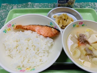 6月10日(木) 公開日 2021/06/14 更新日 2021/06/14 給食の献立 ご飯、鮭の塩焼き、呉汁、梅おかかキャベツ、牛乳です。 梅の季節ですね。 食欲も増進してくれますので、料理にもお使いください。 iPhoneから送信 いいね(0)