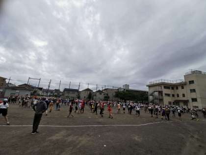 今日は、朝の時間に全校集会で「じゃんけん氷鬼ごっこ」をしました。