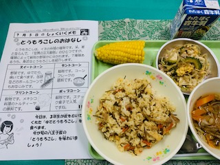 7月5日(月) 公開日 2021/07/06 更新日 2021/07/06 給食の献立 きょうのこんだて ししじゅうし、ゴーヤチャンプル、もずくのスープ、茹でとうもろこし、牛乳です。 きようは、三年生が向いてくれたとうもろこしをいただきました。千人町の鈴木さんの畑のものです。甘くて美味しかったです。 iPhoneから送信 いいね(0)