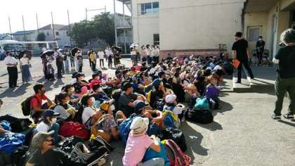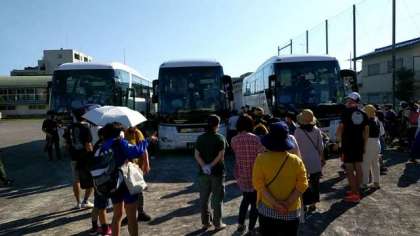 楽しみにしていた日光林間学校がいよいよ始まりです。出発式をしたあとバスに乗って学校を出発です。
