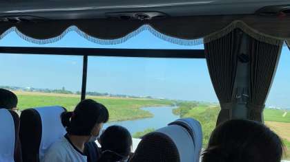 渡良瀬川の上を通過。 栃木県に突入します。 みかも山の大文字を探しながらバスは日光に向かいます。