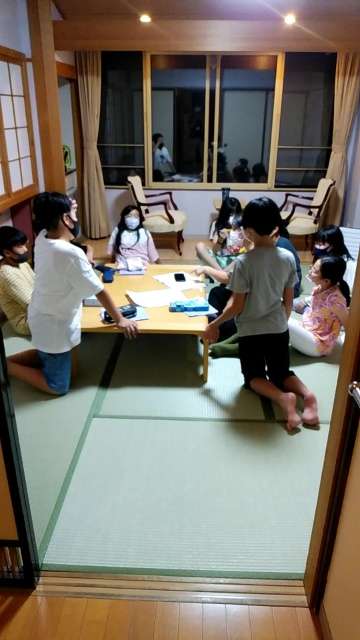就寝前に、係ごとに今日の反省と明日に備えての打ち合わせです。