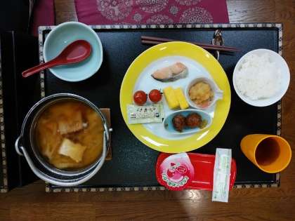 宿に戻って朝食です。ハイキングのためにしっかり食べます。
