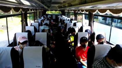 ハイキングの出発地点の湯滝の下までバスに乗って行きます。
