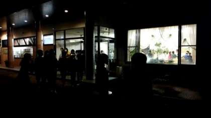 宿の大広間で先生の話を聞いたあとナイトハイクに出発です。ワクワクします。