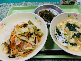 9月14日(火) 公開日 2021/09/14 更新日 2021/09/14 給食の献立 きょうのこんだて ご飯、生揚げの味噌炒め、かきたま汁、茎わかめの胡麻風味、牛乳です。 生揚げや豆腐などの大豆製品を食べて欲しいのですが、子ども達はあまり好みません。そこできょうは、豚肉を使い味噌仕立てで丼にしてみました。 iPhoneから送信 いいね(0)