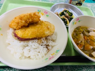 9月15日(水) 公開日 2021/09/15 更新日 2021/09/15 給食の献立 きょうのこんだて 天丼、海苔のお吸い物、小松菜と油揚げのおひたし、牛乳です。 9月5日にパラリンピックも閉会しました。この東京でオリンピック、パラリンピックが開催されたことを記念して東京由来の献立を作りした。 iPhoneから送信 いいね(0)