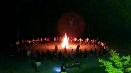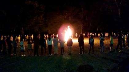 姫木平移動教室1日目その16 公開日 2021/09/15 更新日 2021/09/15 五小の生活 夕食の後はキャンプファイヤーです。すっかり暗くなった中で、火を囲んで練習してきたダンスを踊ったりゲームをしたりして楽しんでいます。 いいね(0)