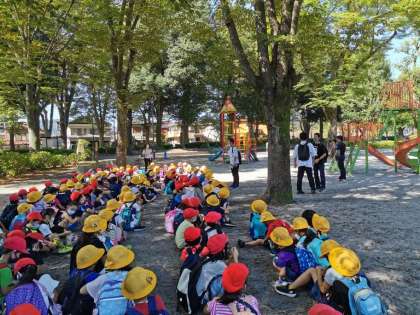 今日は、1年生と2年生のなかよし組で綾南公園に来ています。
