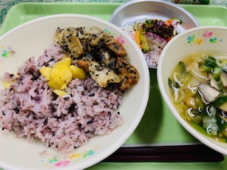 10月26日(火) 公開日 2021/10/26 更新日 2021/10/26 給食の献立 きょうのこんだて 秋月ご飯、ちくわの石垣揚げ、八王汁、浅漬け、牛乳です。きょうのこんだては八王子城御膳です。 給食時間にお知らせした食育メモもアップしますので合わせてご覧ください。 iPhoneから送信 いいね(0)