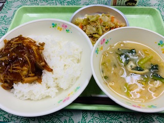 11月10日(水) 公開日 2021/11/10 更新日 2021/11/10 給食の献立 きょうのこんだて ごはん、豆腐ハンバーグきのこソース、お芋の味噌汁、キャベツの生姜風味、牛乳です。 きのこのおいしい 季節です。ハンバーグのソースにたっぷり使いました。 iPhoneから送信 いいね(0)
