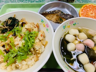 11月15日(月) 公開日 2021/11/16 更新日 2021/11/16 給食の献立 きょうのこんだて 五目ちらし、白身魚の三昧焼き、七宝汁、海苔和え、菊花みかん、牛乳です。 きょうは七五三です。給食でもお祝い御膳を作りました。 iPhoneから送信 いいね(0)