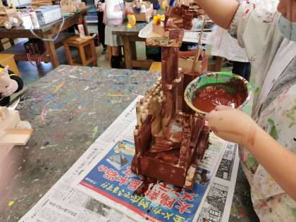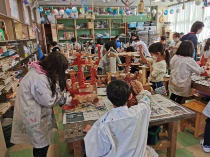 3年生が図工の時間に「動く城」という作品を作っていました。