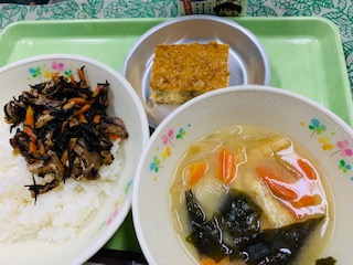11月22日(月) 公開日 2021/11/22 更新日 2021/11/22 給食の献立 きょうのこんだて 八王子産の白いごはん、擬制豆腐、はっちくん味噌汁、ひじきの炒め煮、牛乳です。 きょう八王子産のご飯を炊きました。新米です。ふっくらもちもちで美味しいご飯です。明日は勤労感謝の日、生産者の方にも感謝していただきます。 iPhoneから送信 いいね(0)