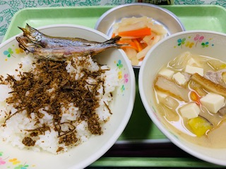 12月14日(火) 公開日 2021/12/14 更新日 2021/12/14 給食の献立 きょうのこんだて ごはん、おかか昆布ふりかけ、焼きししゃも、さつま汁、八王子産ゆず大根、牛乳です。 きょうのゆず大根には第五小学校のゆずを使って浅漬けにしました。ゆずのいい香りが教室に広がります。 iPhoneから送信 いいね(0)